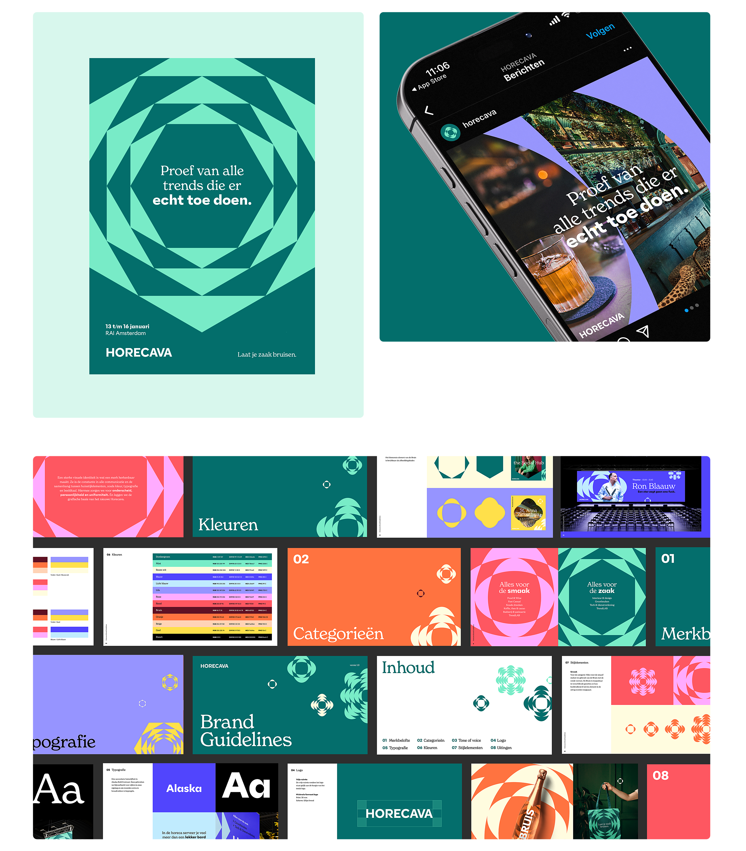 Horecava is one of the largest hospitality industry trade shows, welcoming over 60,000 visitors each year. As great as that is, the organization was ready for a change of pace. It was time to take what had grown into a fun party back to being a serious trade show for hospitality professionals eager to improve their business profile. So the branding needed to communicate this. We achieve this with a complete repositioning and a sparkling rebranding that is just as dynamic, colorful and energetic as the world of hospitality. And lets all visitors know – this is where I'll find everything I need to add more sparkle to my business.