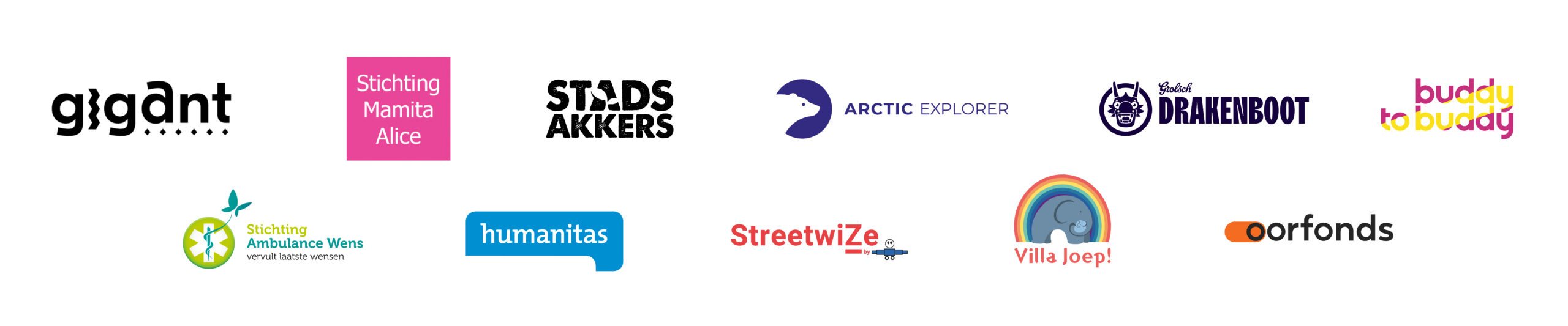 De afgelopen jaren werkten we met veel plezier en voor nop samen met o.a. Gigant Apeldoorn, De Stadsakkers, Humanitas, Stichting Ambulancewens, Artic Explorer,