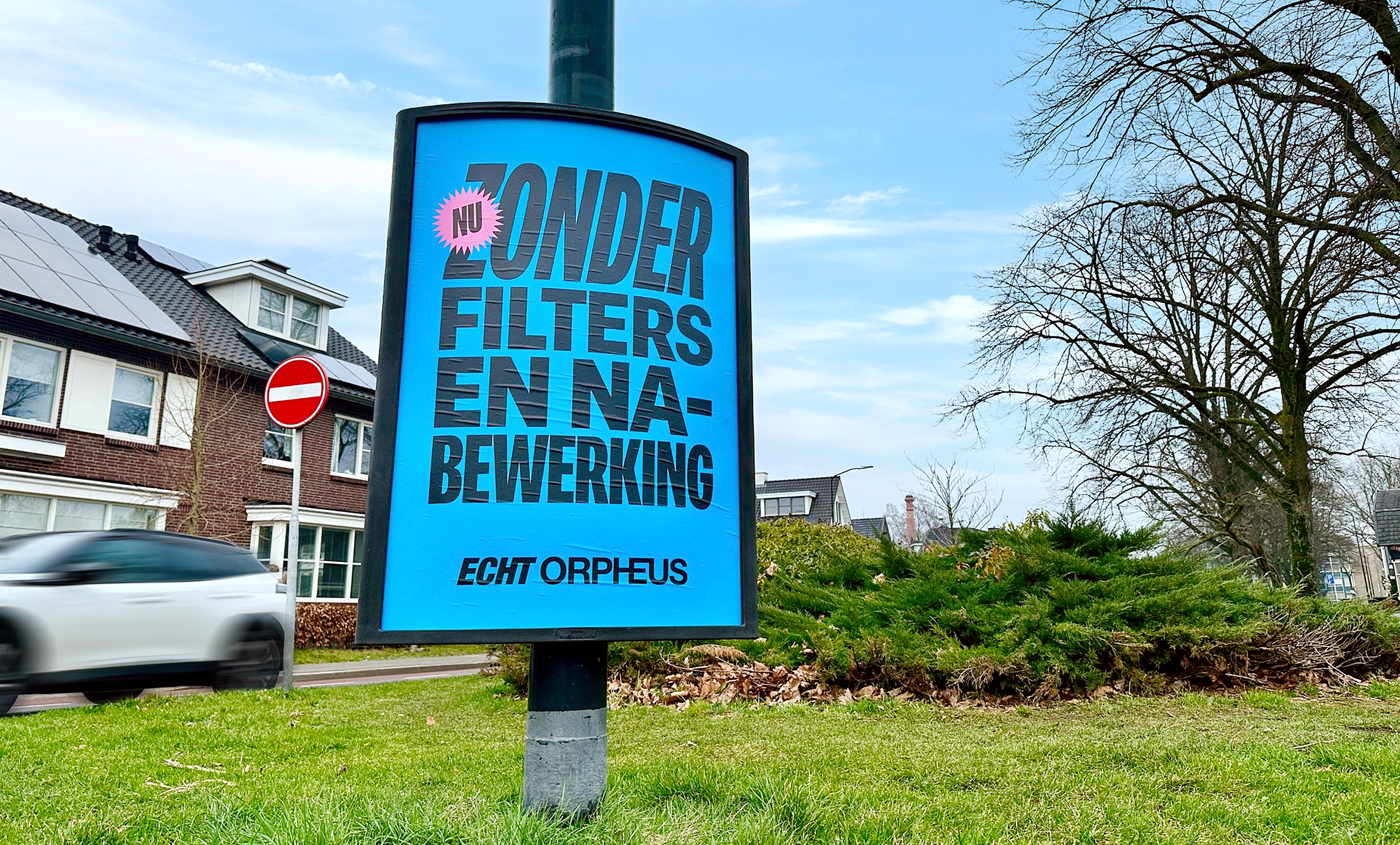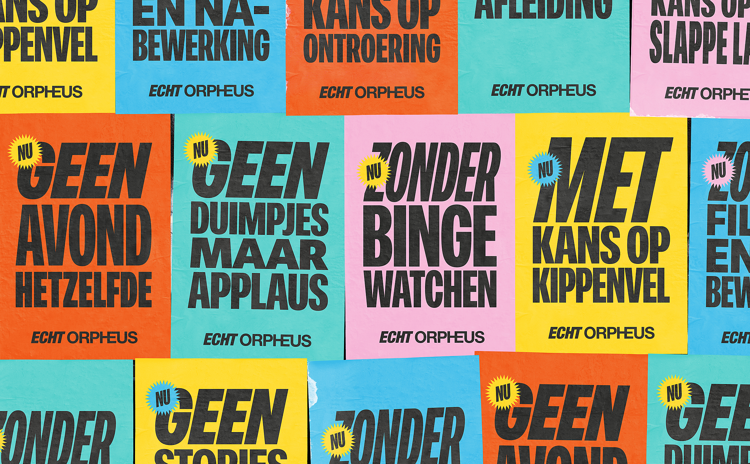 We leven in een tijd waarin zo verschrikkelijk veel is te zien en te horen. Maar wees eens eerlijk. Al die series, stories en streams: wat doen ze nou echt met je. Bij de Apeldoornse schouwburg Orpheus geloven ze dat je pas gegrepen wordt door een verhaal, als ‘ie zich levensecht voor je ogen afspeelt. Geen geping en geswipe. Maar een avond die 100 procent echt is. Echte mensen op het podium. Echte emoties in het publiek. Theater is echt. Dat weet nu heel Apeldoorn door de campagne ‘Echt Orpheus’ die wij voor ze mochten bedenken en maken.